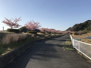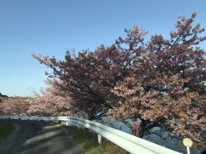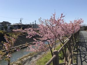 金城(かねしろ)公園の近くに逆川(さかがわ)という川があるんですけど、その川沿いに見頃を迎えると河津桜が1km位咲いてます。